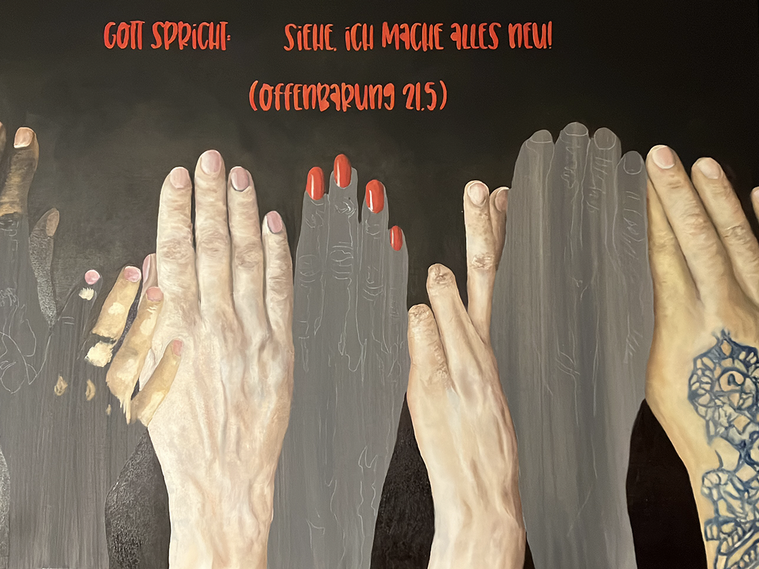 Nach Malte Wulf und Gudrun Brückner-Krebbel setzt Heike Claus-Römer die Jahreslosung 2026 visuell mit Öl auf Leinwand um.