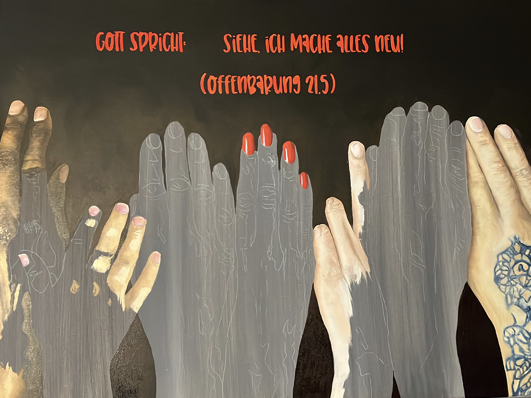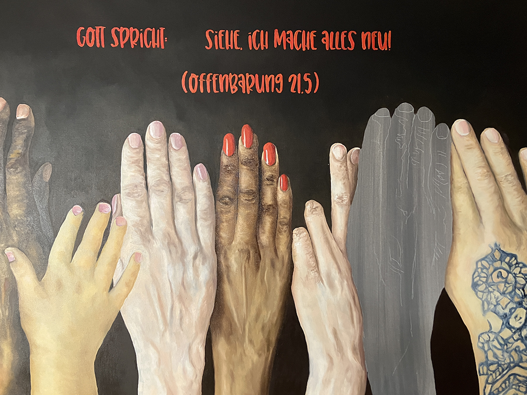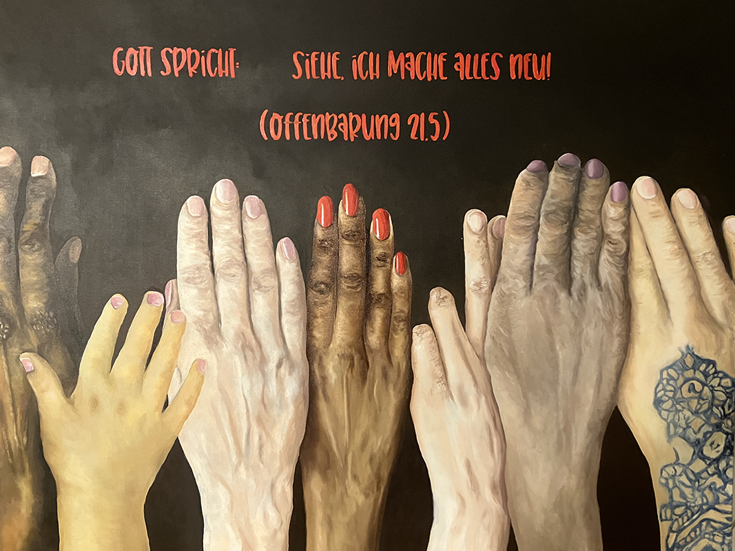 Nach Malte Wulf und Gudrun Brückner-Krebbel setzt Heike Claus-Römer die Jahreslosung 2026 visuell mit Öl auf Leinwand um.